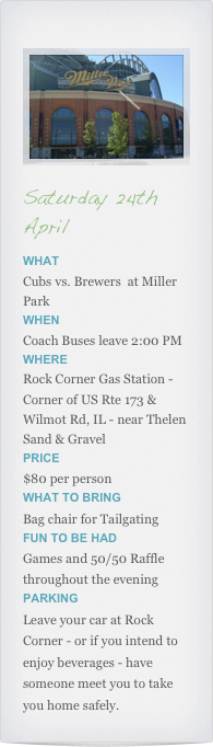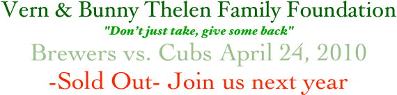 Vern & Bunny Thelen Family Foundation invites you to come with us to Miller Park in Milwaukee for a Cubs vs. Brewers 6:10PM game.
